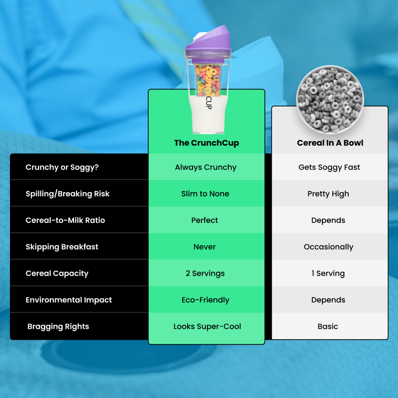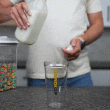 The cereal and milk don't meet until they hit your mouth, keeping your cereal crunchy and fresh until you're ready to eat.